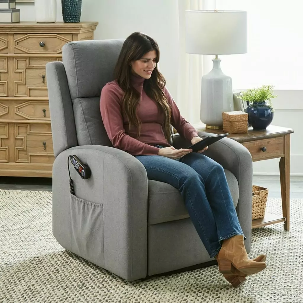 For the last 23 years I’ve had a “push-back” recliner. I looked around, but was having trouble with the look of so many recliners. Then I found the UltraCozy power recliner with the baby track arms. It really blends with the look in our living room. It is so comfortable with all of the different positions and I can easily customize to my needs.