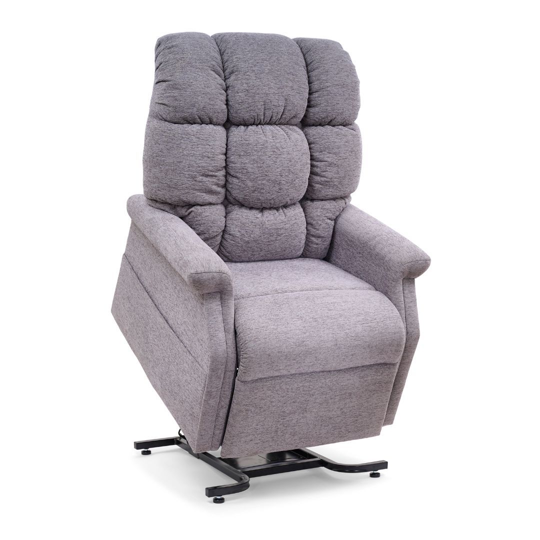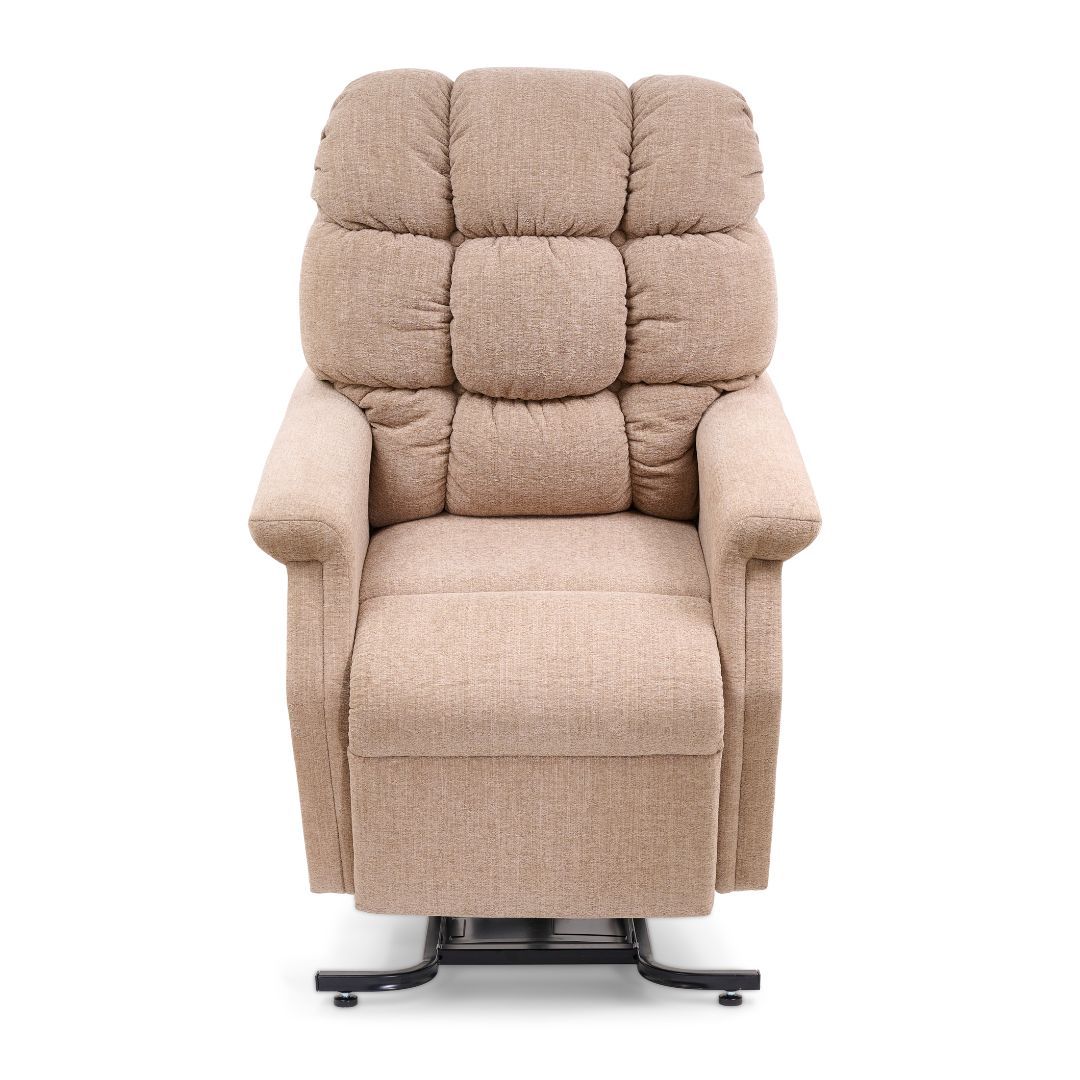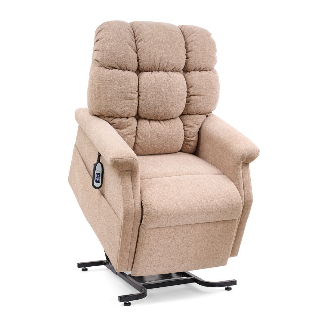Enjoy this hybrid version of a traditional style power lift recliner. The UC480 Medium Large Recliner Chair was designed as a combination medium/large-size recliner that fits individuals of different heights. The plush, biscuit-back design and luxurious chaise pad makes this everyones favorite seat in the house.