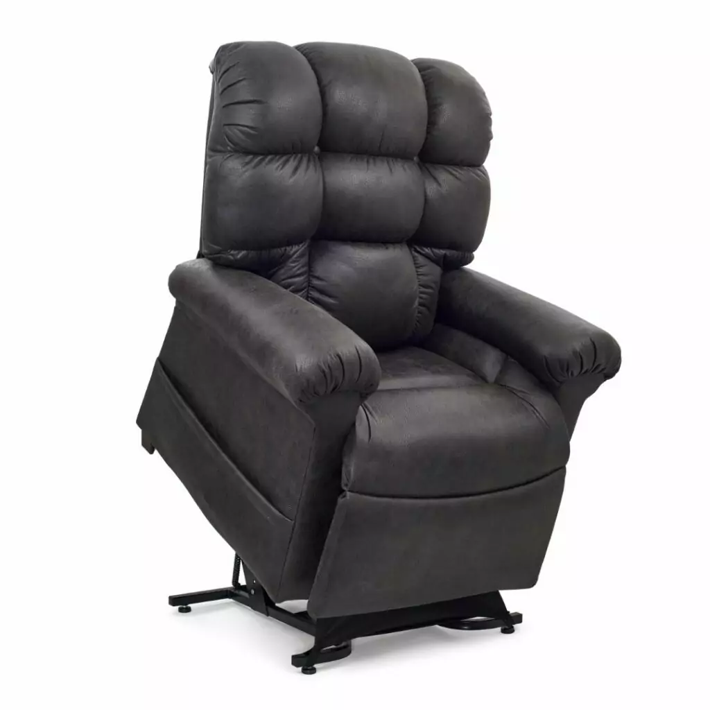 This medium-large lift recliner offers a traditional style with an overstuffed biscuit-back design and plush chaise pad for comfort you can sink into. Take your seating experience even further with our exclusive bucket seat engineered to hug your hips and promote better posture